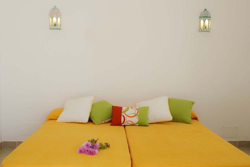 Beautiful typical Ibiza style villa, airy and full of natural light with covered terraces and a large lawned garden. The villa counts with two floors. The ground floor offers an open living/dining area with comfortable sofas and a dining table. From the living area there is access to a large covered terrace and to the lawn garden. The kitchen is well equipped and has access to the exterior. This floor also counts with two twin bedrooms with access to the covered terrace. Both share a separate bathroom and a shower room with two single showers. There is also a double bedroom with access to the pool terrace and an en-suite bathroom. The first floor boasts a spacious double bedroom with en-suite bathroom with a dressing area. From this bedroom there is access to a terrace roof. This bedroom can also be reached by an exterior stairs from the garden to the terrace roof. Outside by the pool we find a separate small twin bedroom with an en-suite shower room and a small coverd terrace.