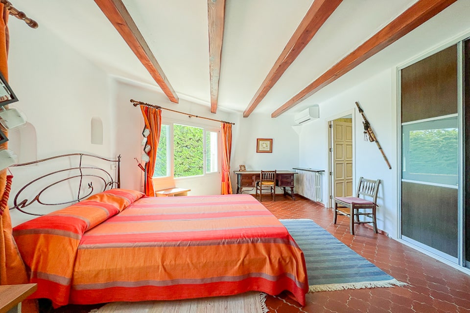 The house has an interior patio where there are three bedrooms. A bedroom for children, with a single bed plus a trundle bed and a compact en-suite shower-room. Another with double bed and shower-room close to the bedroom. The last bedroom with a double bed has an en-suite shower-room.