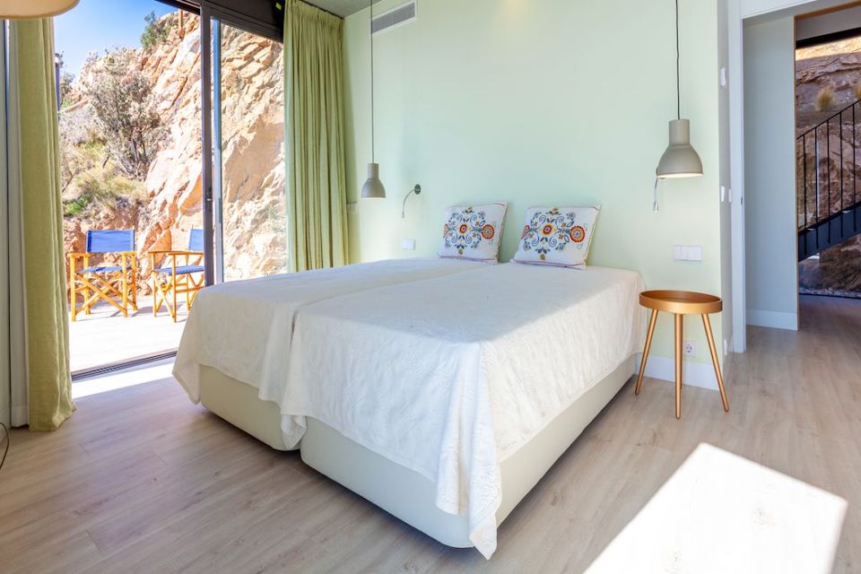 On the second floor is the sleeping area with three bedrooms; one bedroom with double bed and private bathroom with shower and bath. Another double bedroom and one twin bedroom, both rooms have two beds, and both rooms with access to terraces with splendid sea views, these two bedrooms share a bathroom with shower and bath and one toilet. The bathrooms have contemporary finishes and high-quality accessories.