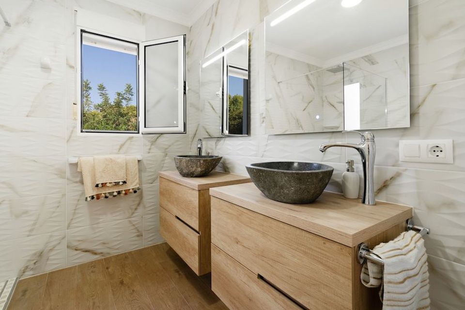 Villa Cervol has been completely renovated in 2022. Inside it has three large bedrooms and two new bathrooms. There is a beautiful wood kitchen with a stunning marble island.