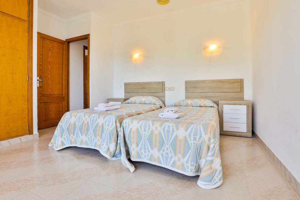 Large two-storey semi-detached holiday villa. On the ground floor there is a dining room, from where there is access to the kitchen and to a conservatory with a second dining room that has partial sea views access. The spacious living room has also sea views. From the living room there is access to a twin bedroom with en suite shower room. Guest toilet and utility room. On the first floor there are four bedrooms. The master double bedroom with access to a terrace with sea views, en suite bathroom with separate shower and a dressing room. The others, two twin bedrooms and a double bedroom share a separate bathroom.