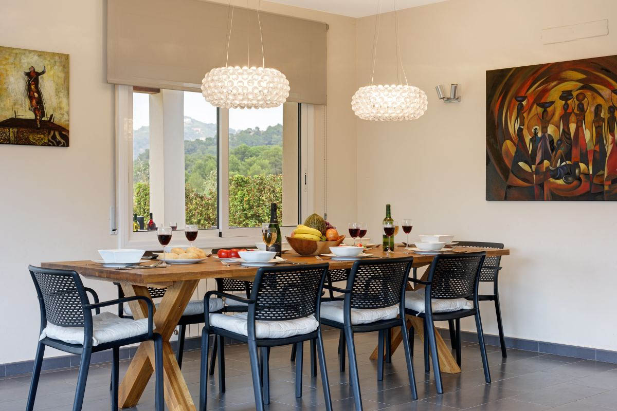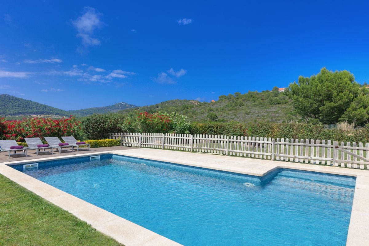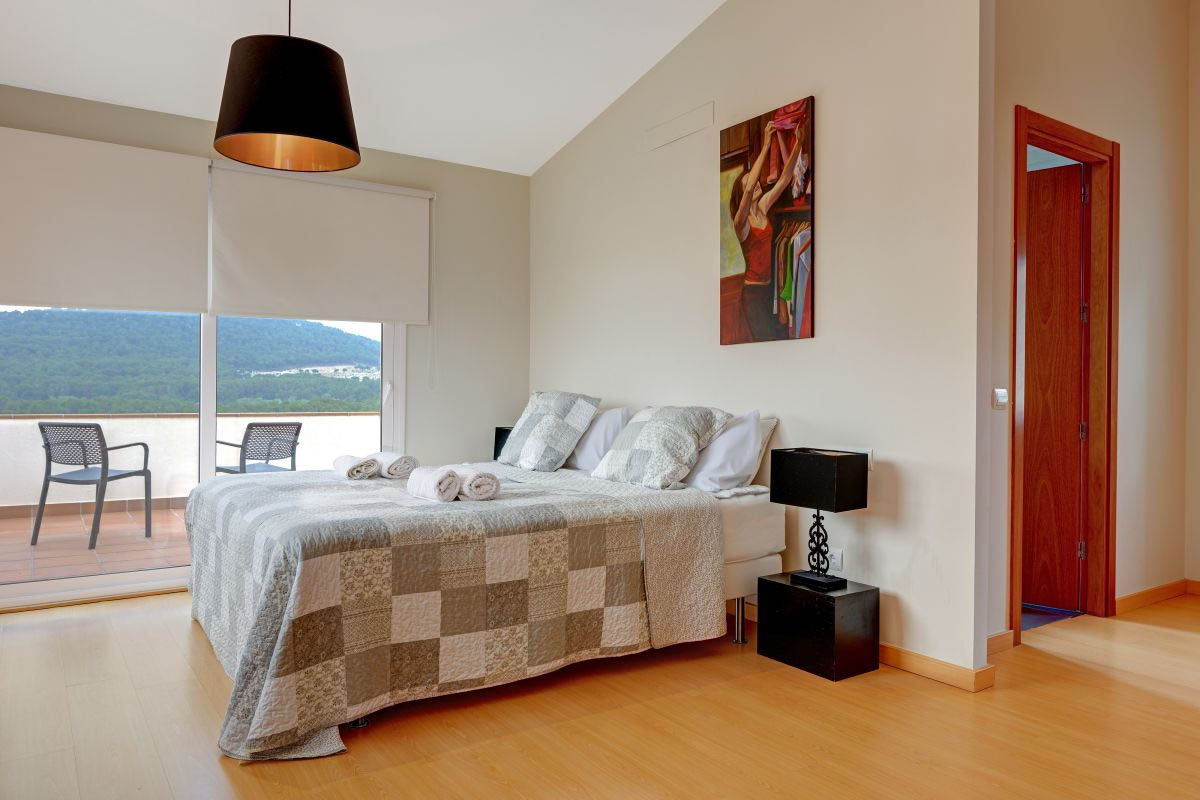 On the upper floor there is a loft area with a king size bed and a single bed. Next to this, is the master bedroom with en-suite shower room. From the master bedroom there are doors that lead onto a terrace with a fantastic view to the mountain and to the garden and pool area. WiFi. Sleeps 8-9 people.