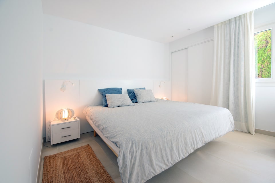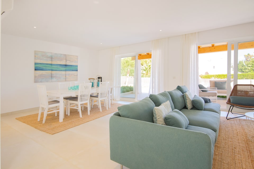 Lovely four bedroom villa, spacious and completely restored with a contemporary and fresh style to rent in Cala D'Or, Majorca. This Cala D'or villa is located in a quiet residential street only a few minutes' walk to the sandy coves Cala Esmeralda and Cala Gran, as well as Cala D'Or centre with restaurants, shops and amenities.