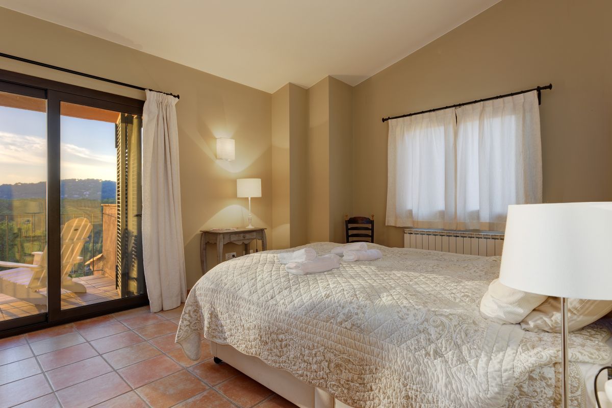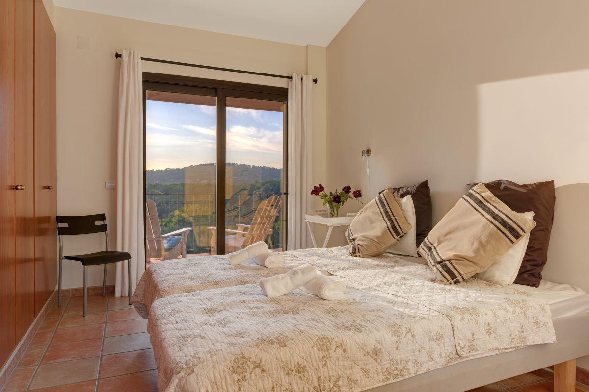 Stairs lead to the first floor where there are 2 double bedrooms & 2 twin bedroom (2 en suite bedrooms), 3 of them having access to a large upstairs terrace with views over pool and garden, one bathroom and one room with sofa bed (no window).